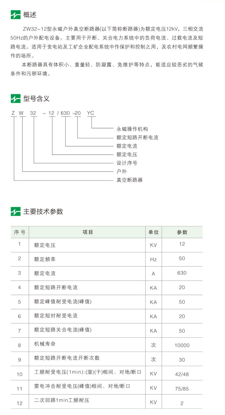 > ZW32-12型永磁户外真空断路器